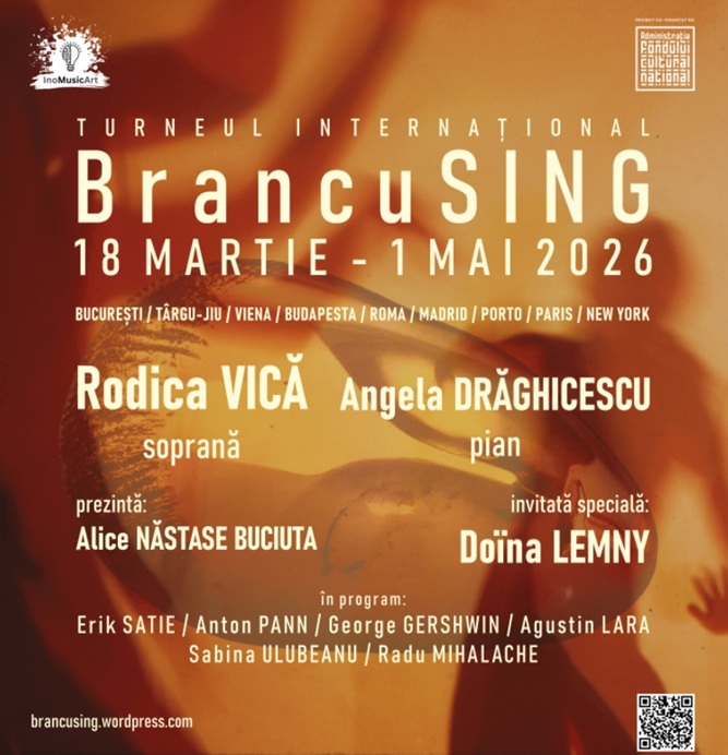 Turneul internațional BrancuSING, desfășurat în perioada 18 martie – 1 mai 2026, este organizat de Asociația InoMusicArt, cu sprijinul Administrației Fondului Cultural Național (AFCN), și marchează împlinirea a 150 de ani de la nașterea lui Constantin Brâncuși printr-un demers artistic care transpune în limbaj sonor ideile și formele sculpturale ale marelui artist. Proiectul propune o întâlnire între muzică, patrimoniu, istoria artei și creația contemporană, desfășurată în spații culturale din România, Europa și Statele Unite ale Americii. Proiectul apare într-un context în care creația muzicală contemporană românească inspirată de patrimoniul cultural rămâne puțin prezentă în afara mediului de specialitate, iar BrancuSING își propune să aducă acest repertoriu către publicul larg, dar mai ales către tineri, construind o punte între moștenirea artistică brâncușiană și expresia muzicală actuală.